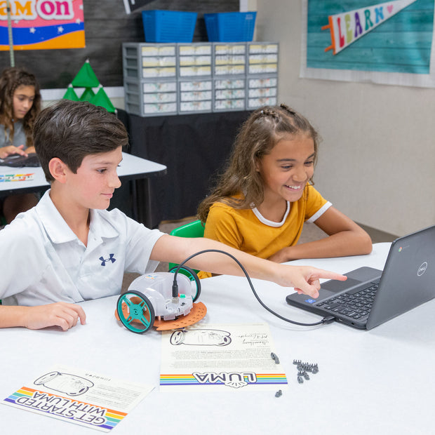 The 5th Grade Computer Science program uses LUMA® Programmable Robots to make coding and robotics engaging, approachable, and meaningful for all learners. Across approximately 40 hours of standards-aligned instruction, students develop foundational computer science, robotics, and problem-solving skills through hands-on activities and interactive storytelling—no prior experience required. Guided by animated videos, students join a fictional robotics company to explore how LUMA can improve real-world industries, applying critical thinking, creativity, and collaboration along the way. Scalable and career-focused, this program equips students with the high-demand technical and analytical skills needed for future success in STEM fields while fostering curiosity and confidence in coding.