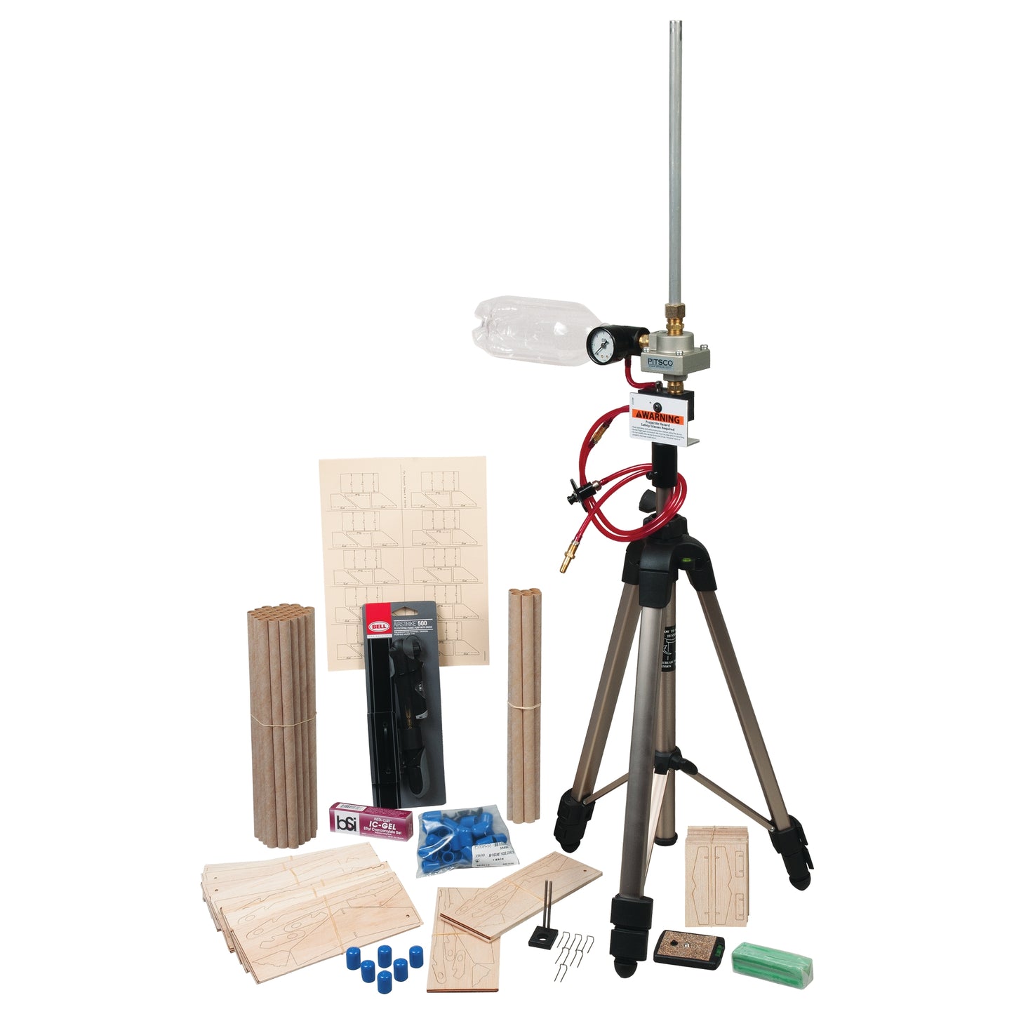 First, each student builds and launches a high-flying tube rocket. Then, they take aerospace concepts further by building a balsa wood glider that rides a rocket into the sky and releases at apogee to glide down on its own. This package contains enough materials for 30 students as well as the necessary launch equipment.