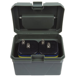 A conveniently handled box that comes with two six-volt batteries that can have alligator clips attached to them. It’s perfect for use with electrical experiments where a battery is needed to demonstrate wiring. Alligator clips sold separately.