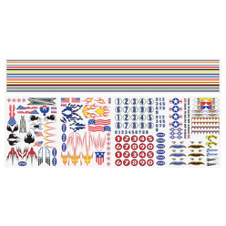 These decals will add unique flavor to scale models, metric dragsters, rockets, model airplanes, and more!
