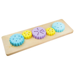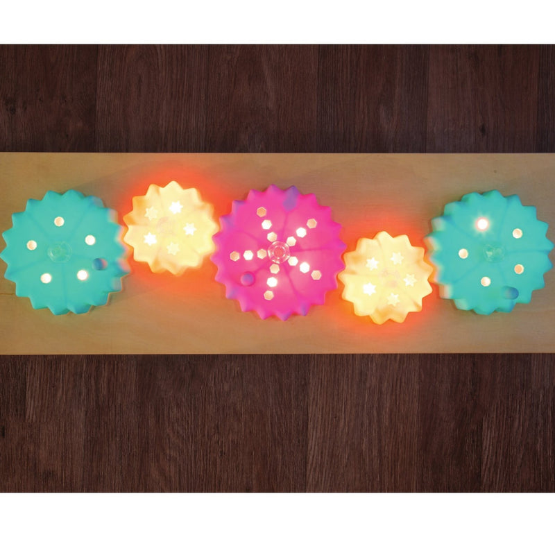 Children will love interacting and making discoveries with this wooden board, with cogs that light up and change color when rotated. The board is a great tool to incorporate fine motor skills and hand-eye coordination in any program. It can be used on tabletops and floors or be fastened to the walls.