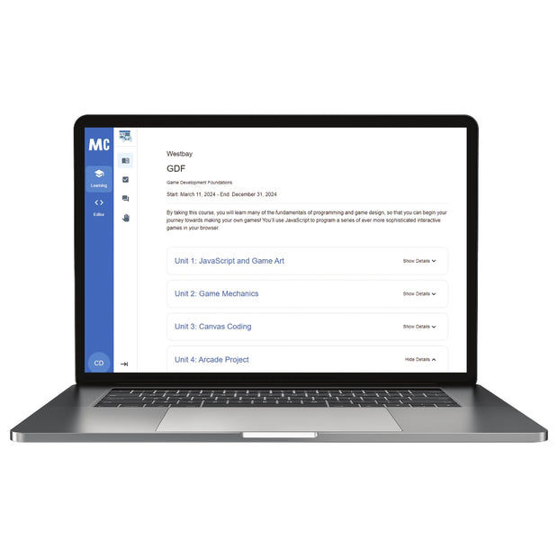 The Mastery Coding™ High School Game and Make Annual Site License includes unlimited access to the following courses for one year: