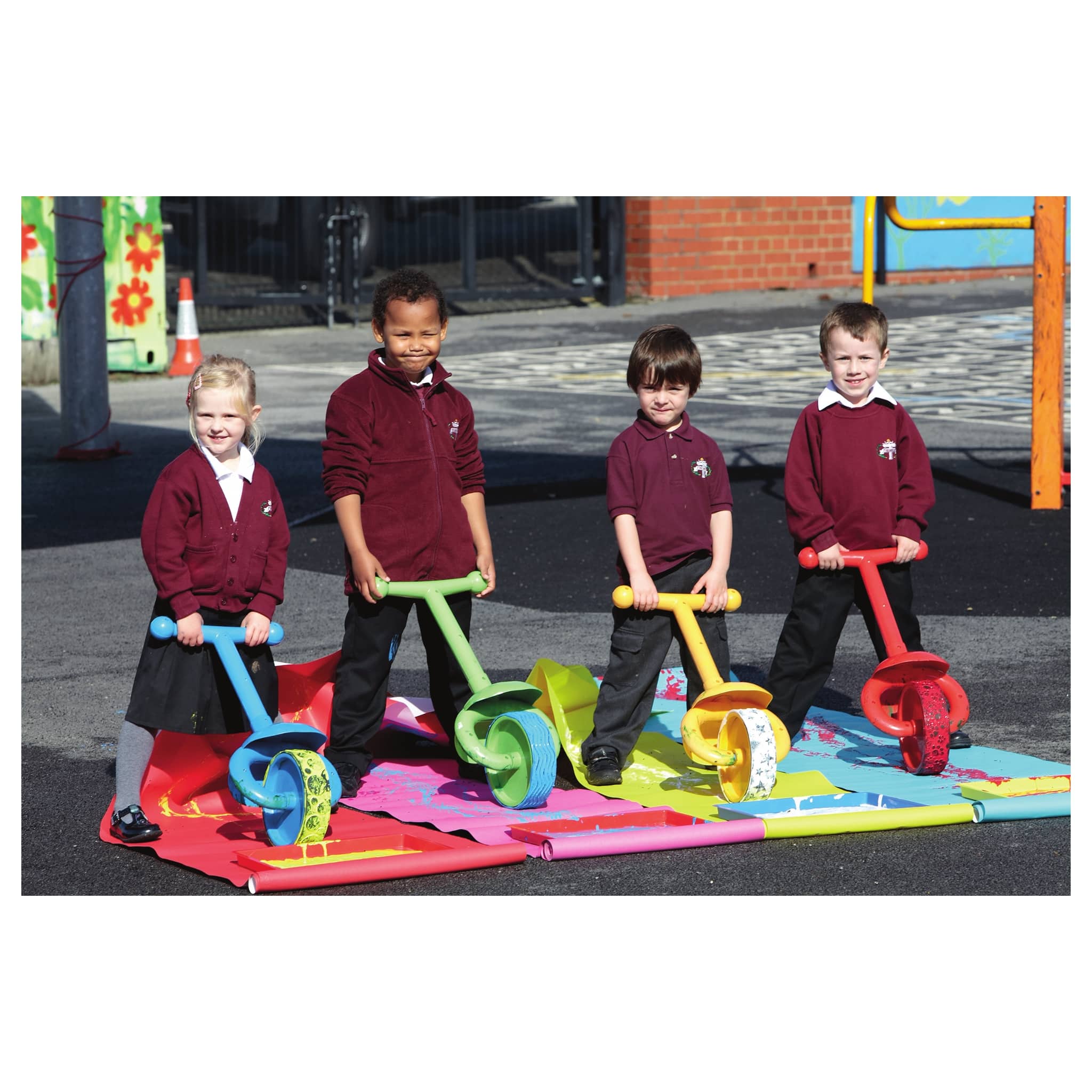 Students become artists with these wheeled painters they can trundle through paint or puddles! Each painter has a different pattern to create various designs on the playground or paper. Children will love twisting and turning with this giant art resource as they create a large outdoor canvas artwork.