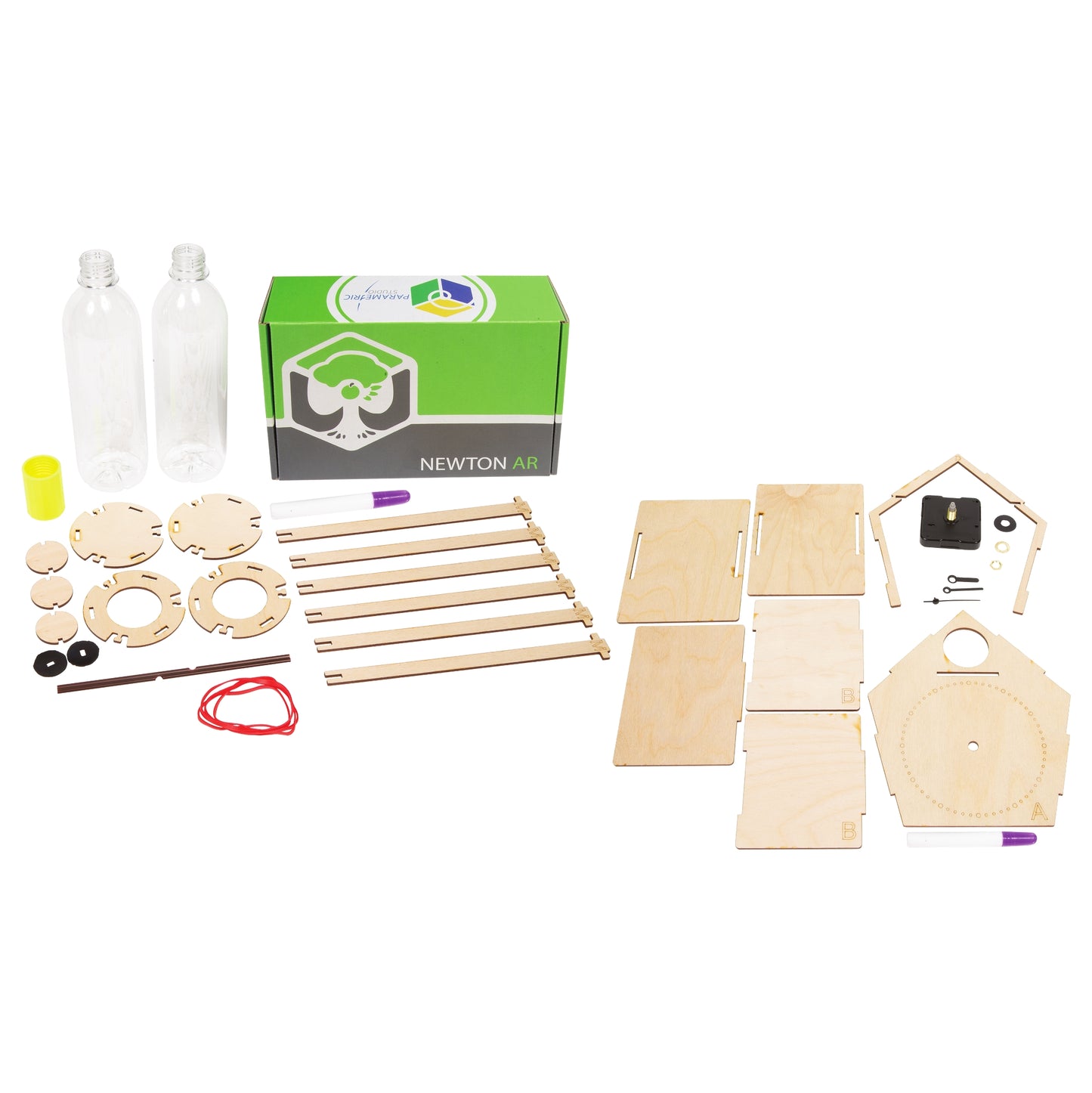 With the Clocks kit, students use the two included timepiece kits and the Newton AR app to learn about time, how to read analog clocks, how a water timer/clock works, how time can be measured, and how time can be used to measure events. They will be able to customize their clocks however they like!