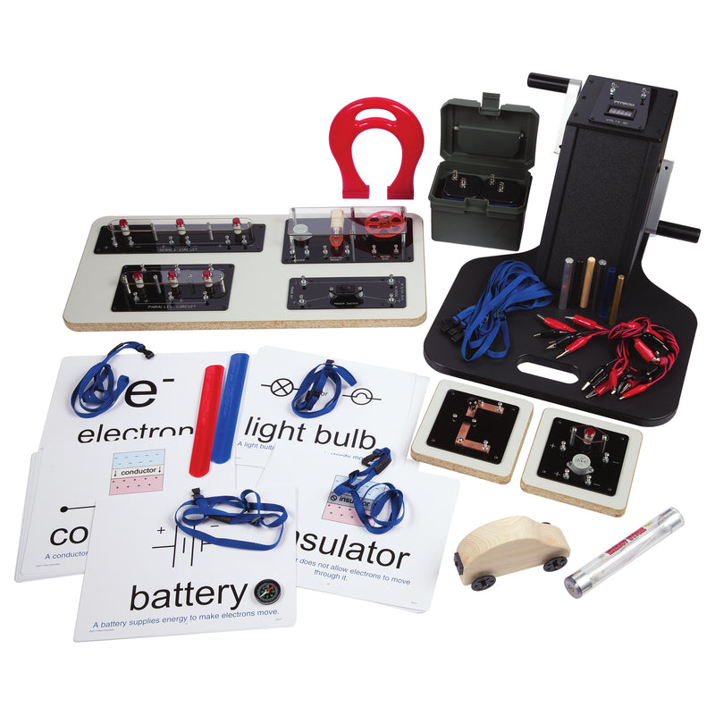 Physical education, electricity, and magnetism all come together in the STEM in the Gym® – Electricity & Magnetism Package. With this innovative program aimed toward elementary grades, students will experience generating electricity, the type of circuitry involved in transferring electricity, and how electricity is used. They will also experience the force of magnets with the push-pull car activity focused around the push and pull of magnets.