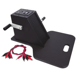 Students use their strength to power this generator. Have a student kneel on the ground in front of the generator and begin using the crank on each side of the generator while another student uses alligator leads to connect to the different electricity boards. An LED display on the generator shows the voltage being produced. This is an integral part of the STEM in the Gym® – Electricity & Magnetism curriculum.