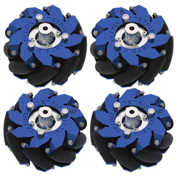 Made of a durable Delrin plastic inner core, high-strength blue anodized aluminum roller plates, a Delrin plastic inner roller core, and molded-on rubber outer roller, all built on steel roller pins, these Mecanum wheels are made for intense competition. You can confidently support a 65-pound robot when four of the TETRIX Mecanum Wheels are used as drive wheels.